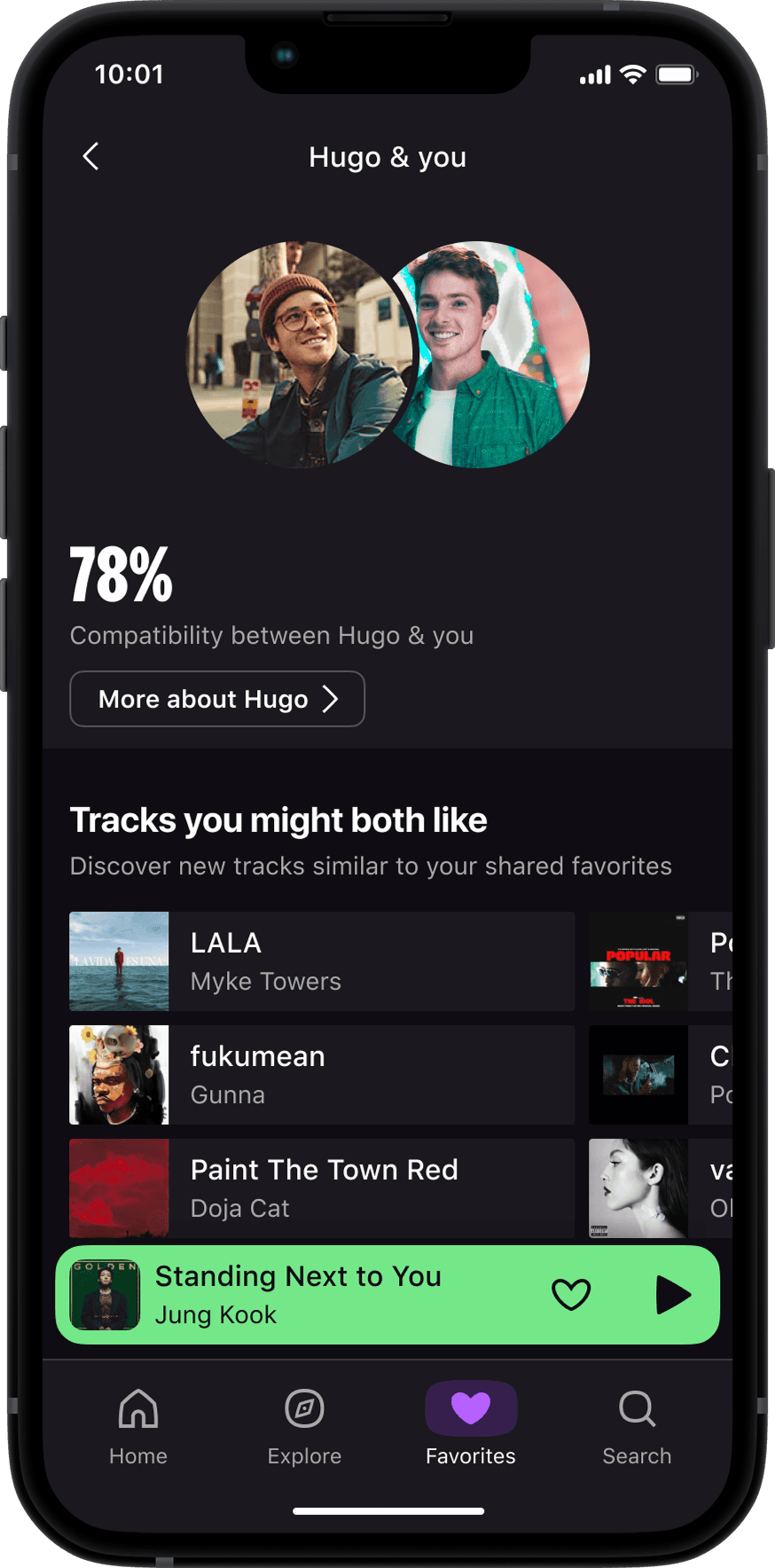 We aimed to enable users to share, compare, and experience music together in meaningful, social ways.